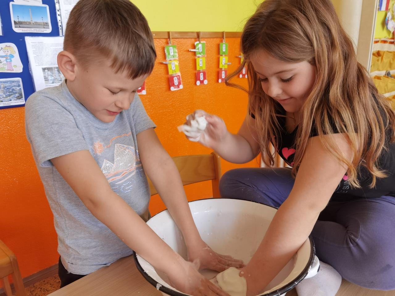 Škrob nasypeme do nádoby (nemáme-li kukuřičný, můžeme použít bramborový), po částech přiléváme vodu (lépe méně než více) a pomalu mícháme, nejlépe rukama. Roztok si občas popleskejte, abyste poznali správné složení. Když Vám při rychlém míchání tuhne, je to téměř ono – dál míchejte pomalu a ještě chvíli míchejte a přidávejte škrob.