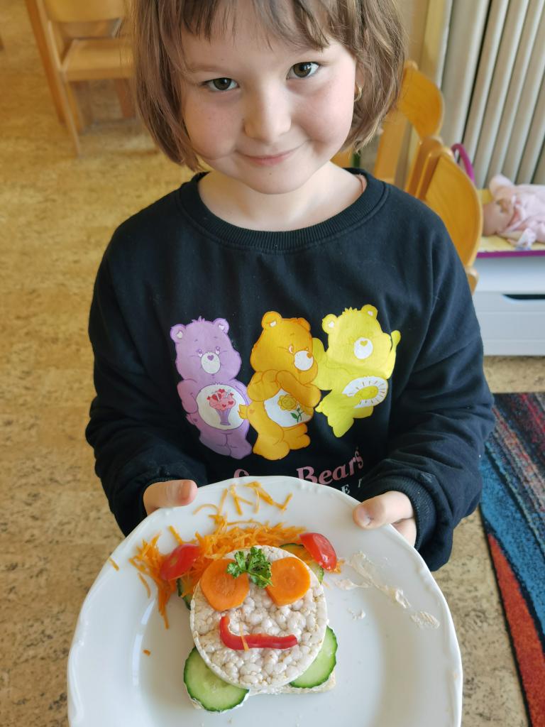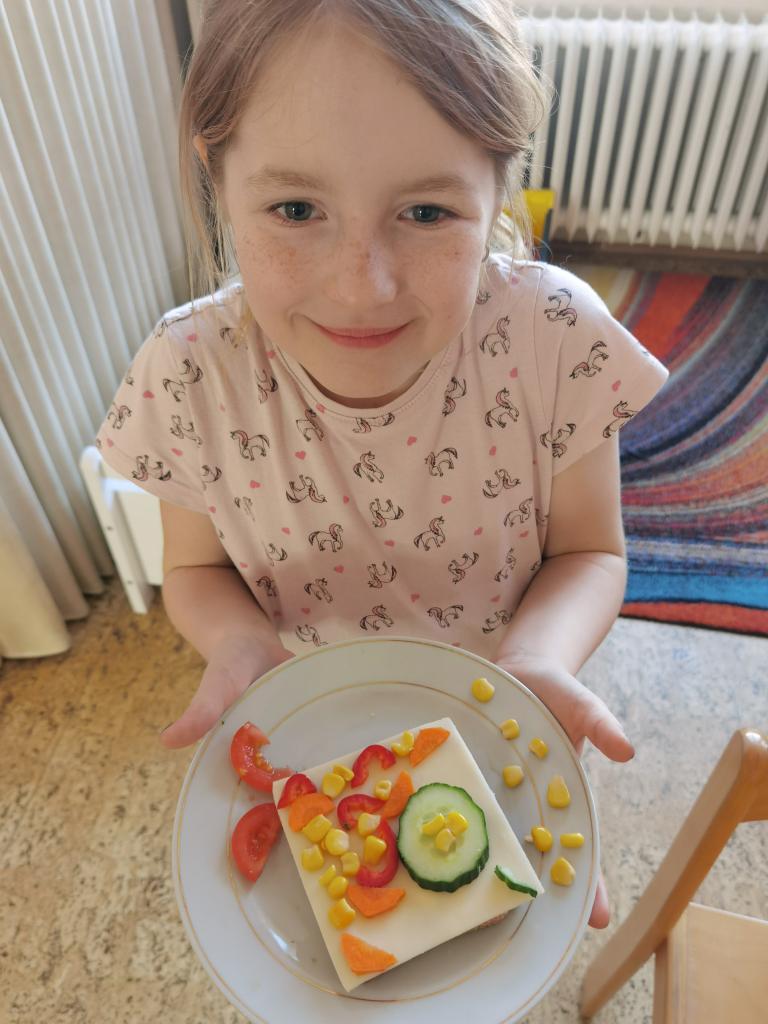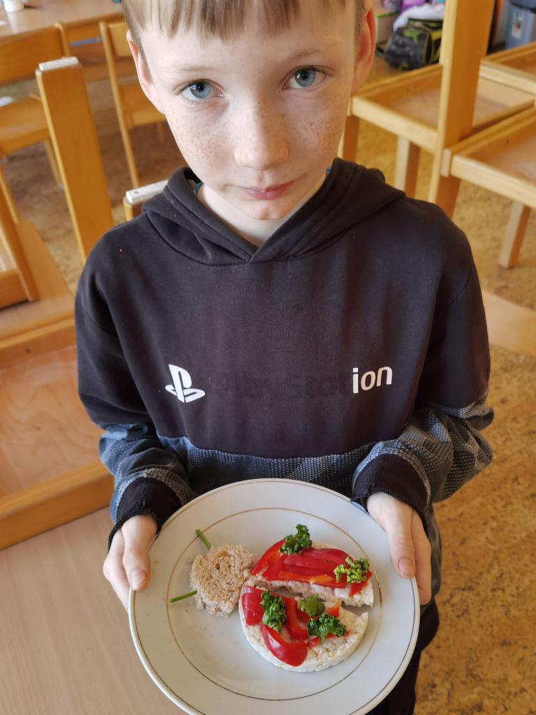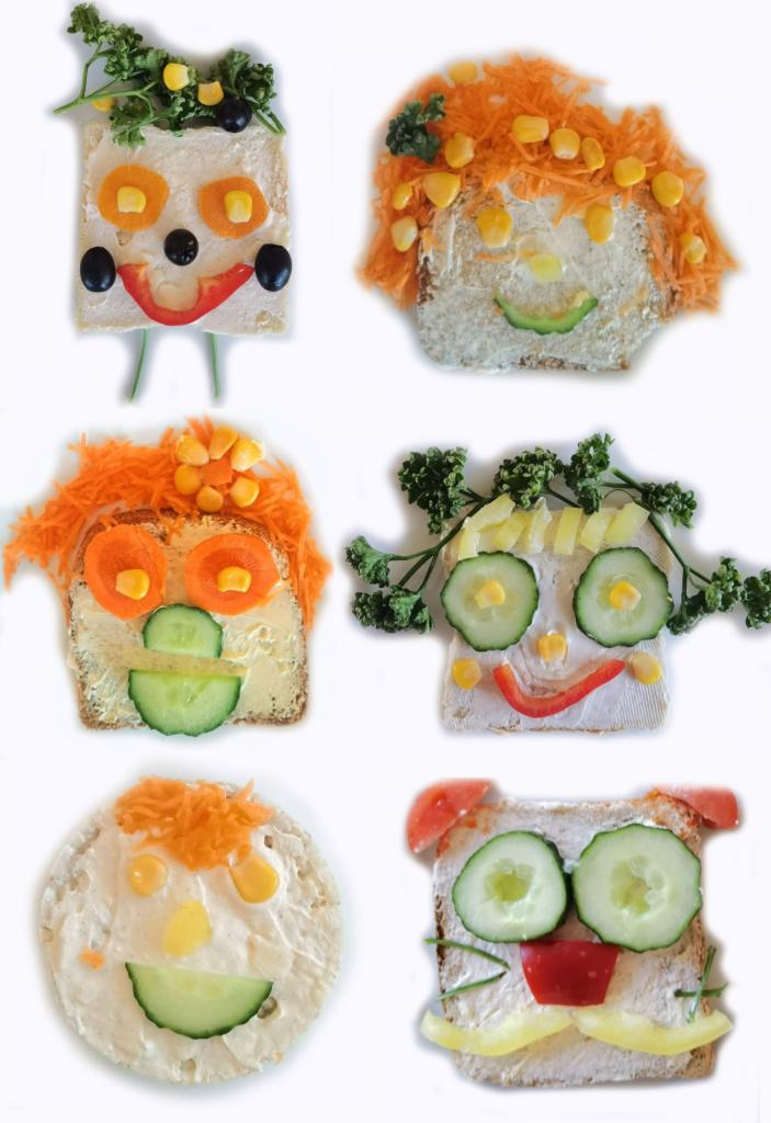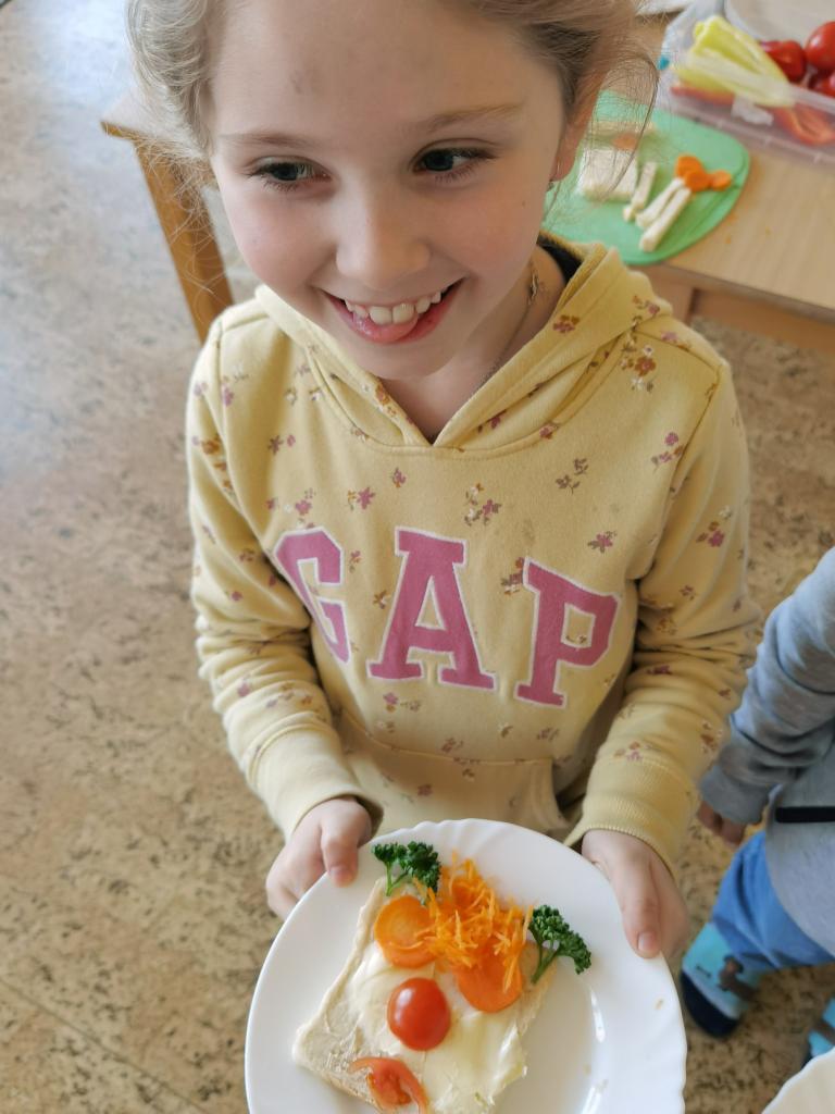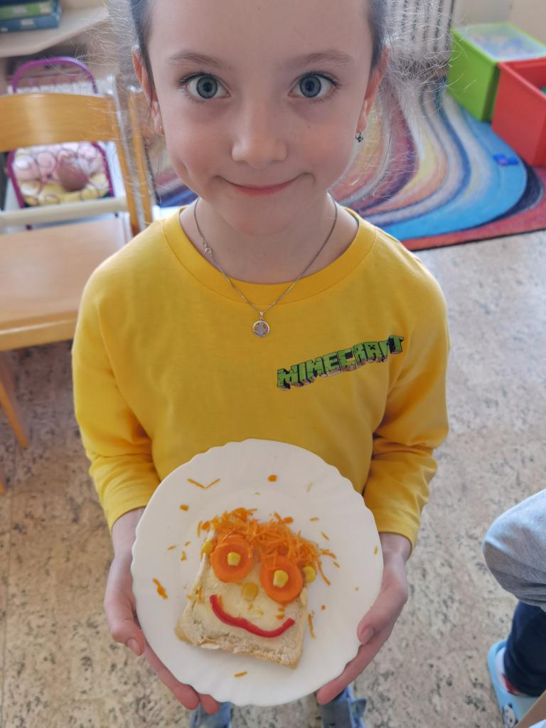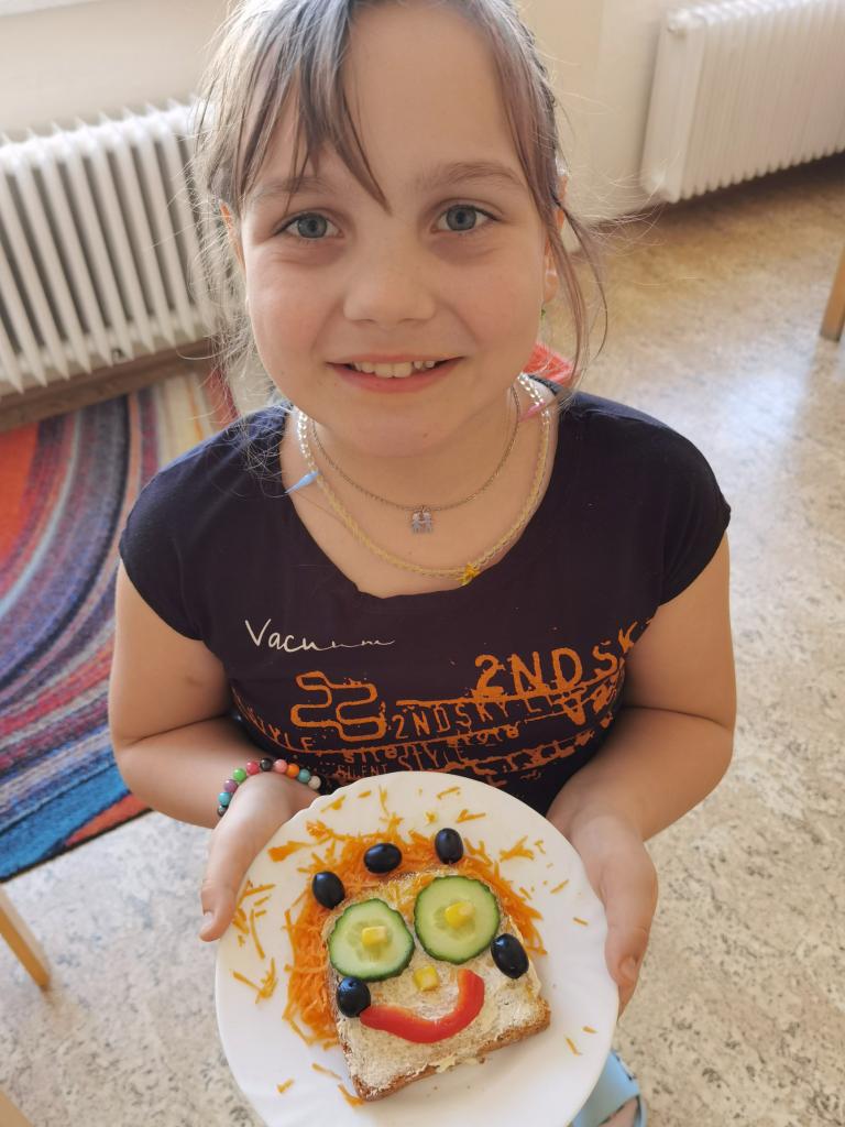 Děti si s nadšením připravily zdravé a veselé svačinky, které obsahovaly různé druhy chlebů, máslo, tvarohovou pomazánku a další ingredience jako pestrobarevnou zeleninu, sýr, šunku, vajíčka atd.Každý si vybral to, co mu chutná a po vytvoření si všichni užívali společné hodování u prostřeného stolu