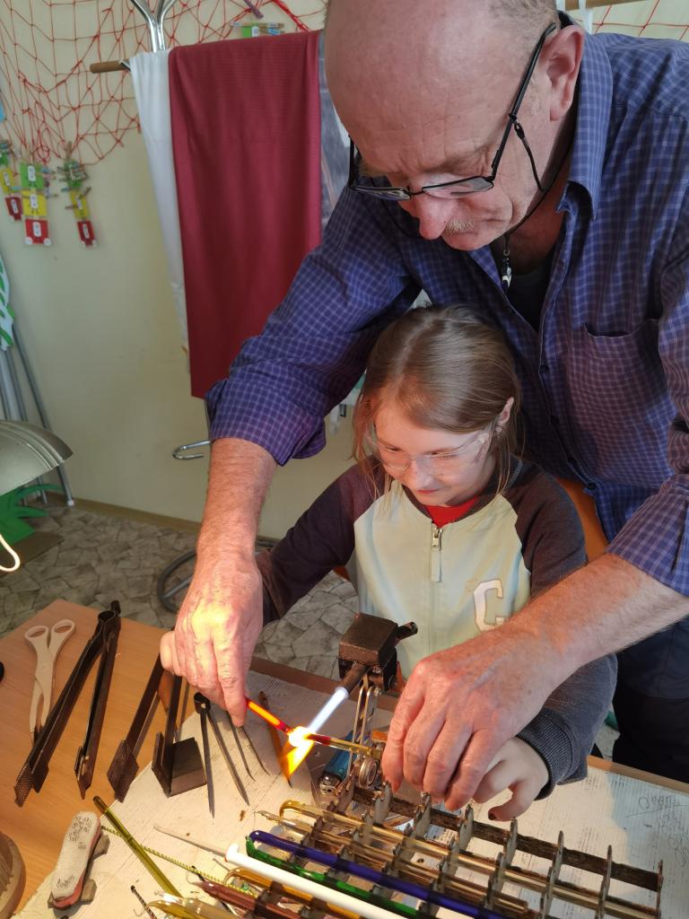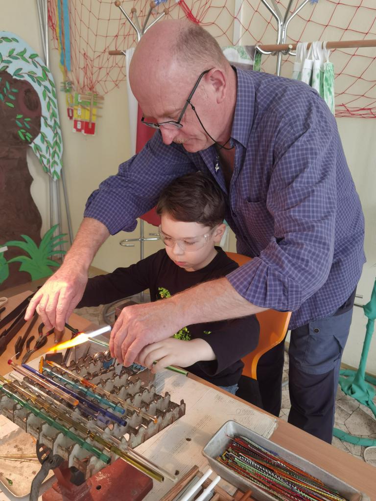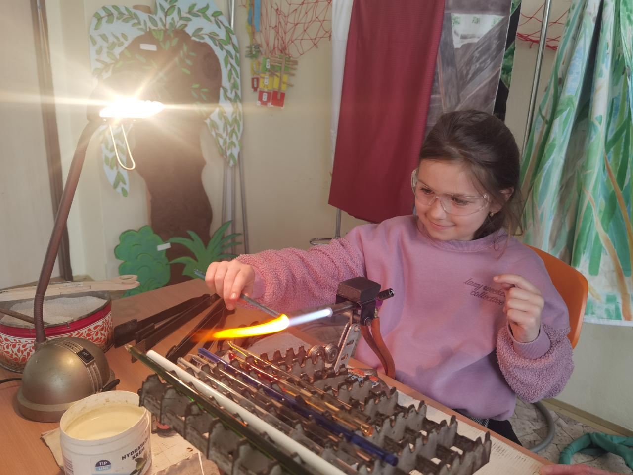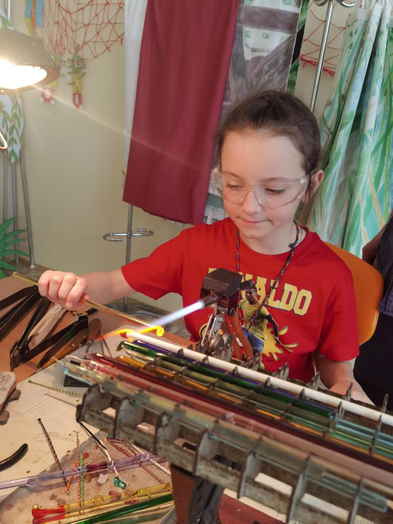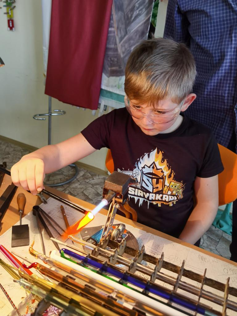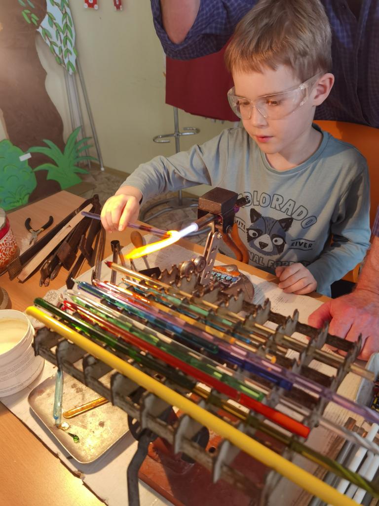 Ve školní družině proběhla zajímavá akce,kde si děti samy vyzkoušely práci se sklem. Pod vedením zkušeného pana Košlera si vybraly barvu a tvar svého přívěsku - výsledkem byla pestrobarevná srdce, lístky, vafle či korálek. Zajímavostí byly mj. i speciální kleště na tvarování,známé jako kaprcvokajz.