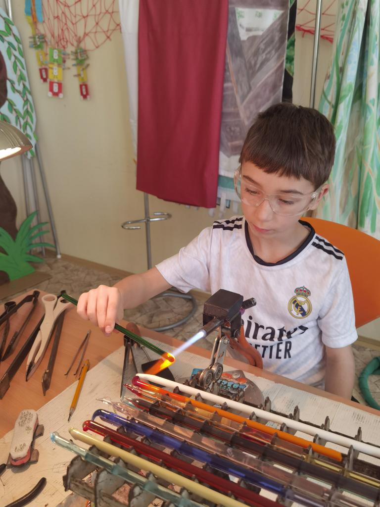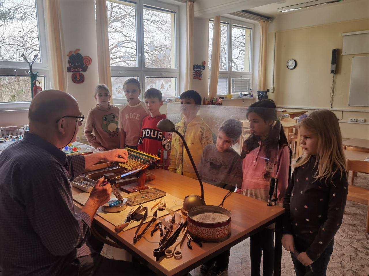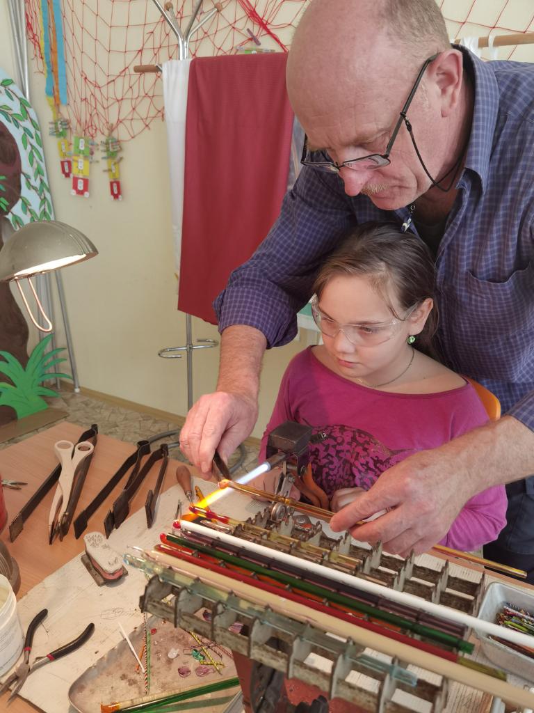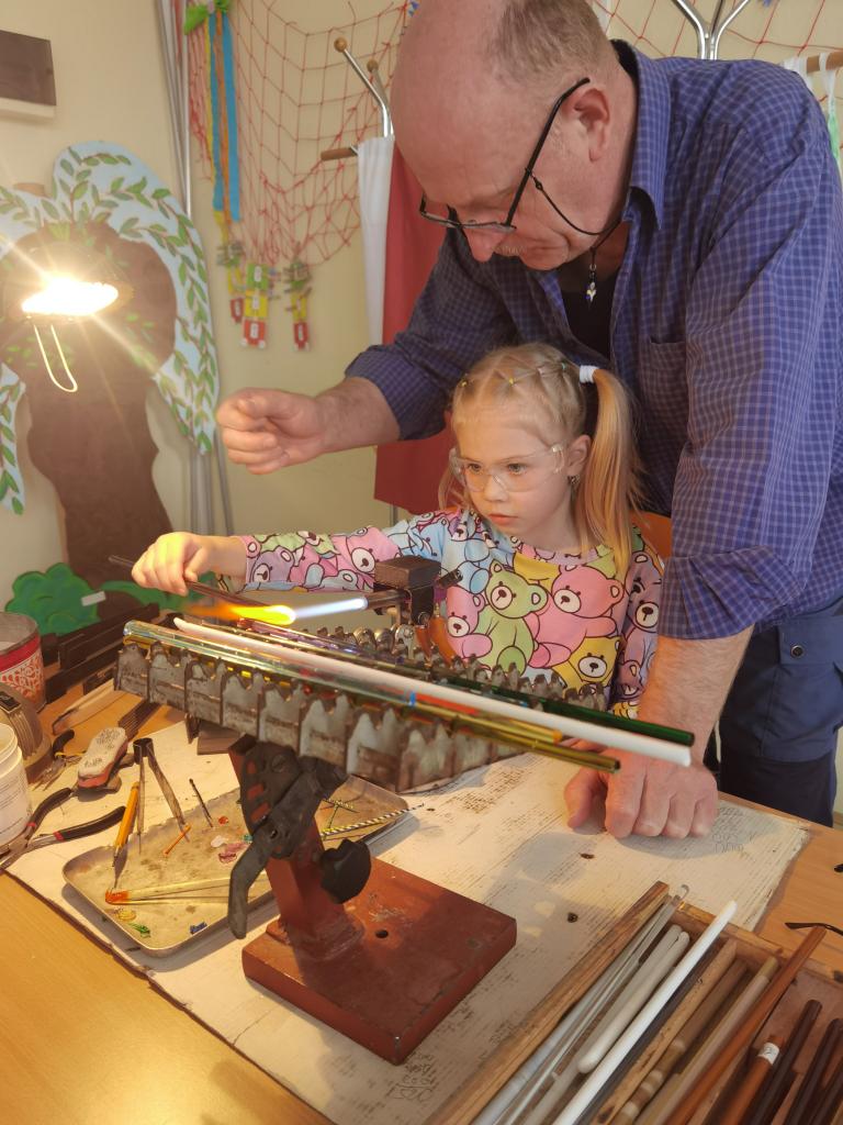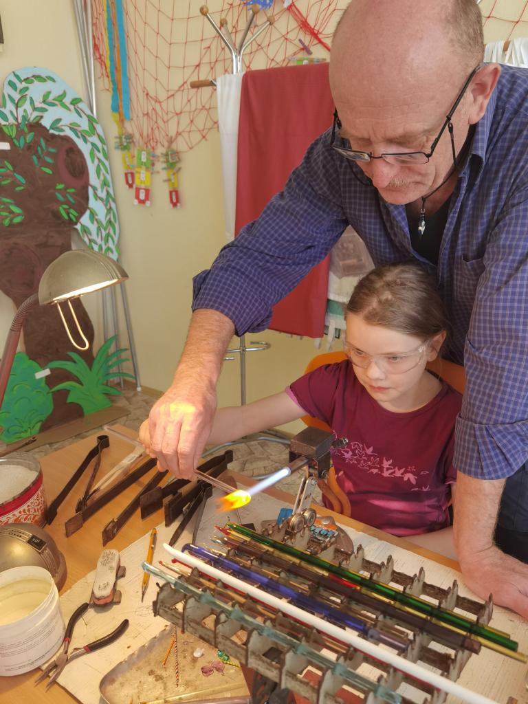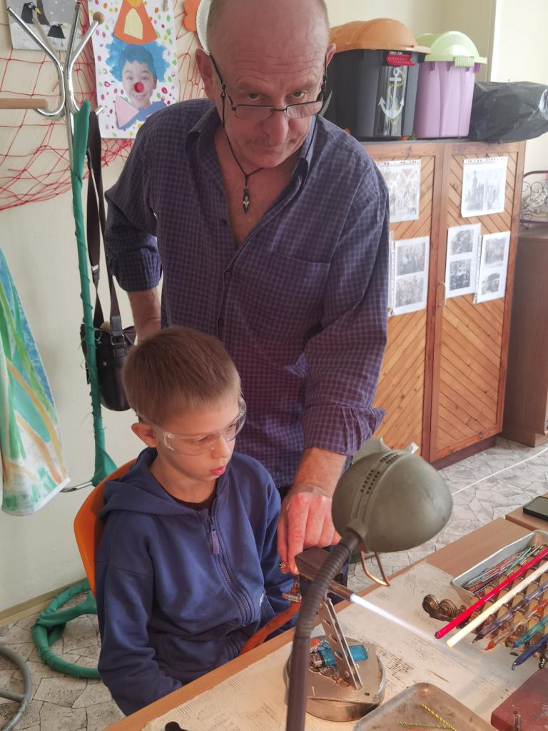 Ve školní družině proběhla zajímavá akce,kde si děti samy vyzkoušely práci se sklem. Pod vedením zkušeného pana Košlera si vybraly barvu a tvar svého přívěsku - výsledkem byla pestrobarevná srdce, lístky, vafle či korálek. Zajímavostí byly mj. i speciální kleště na tvarování,známé jako kaprcvokajz.