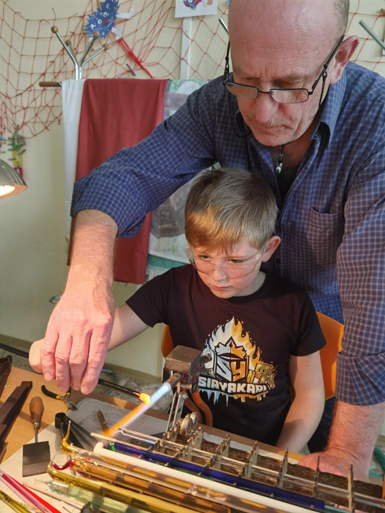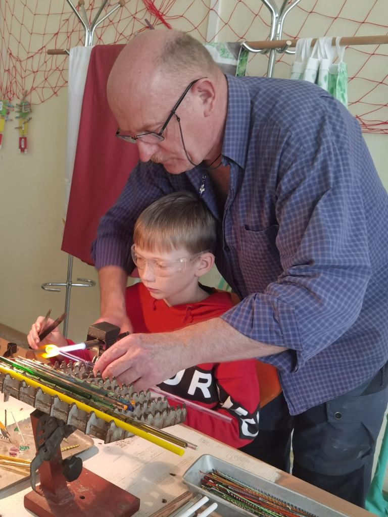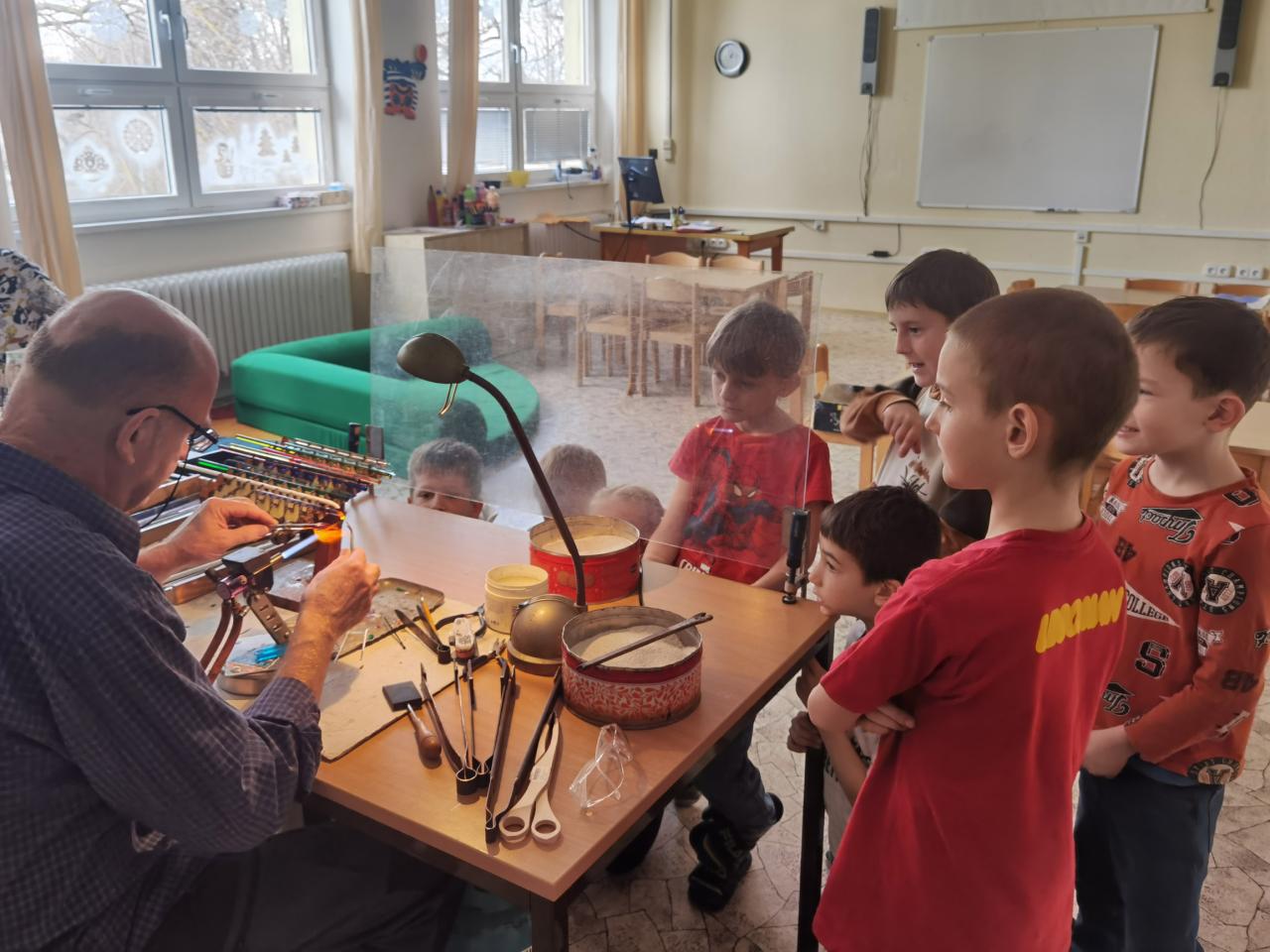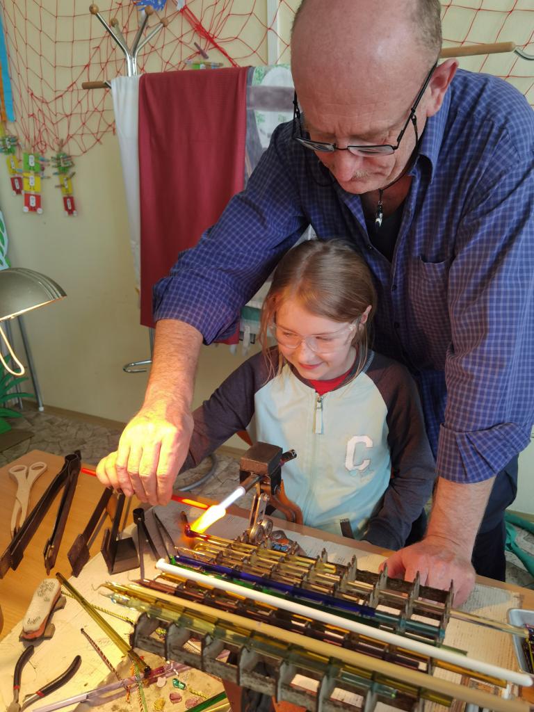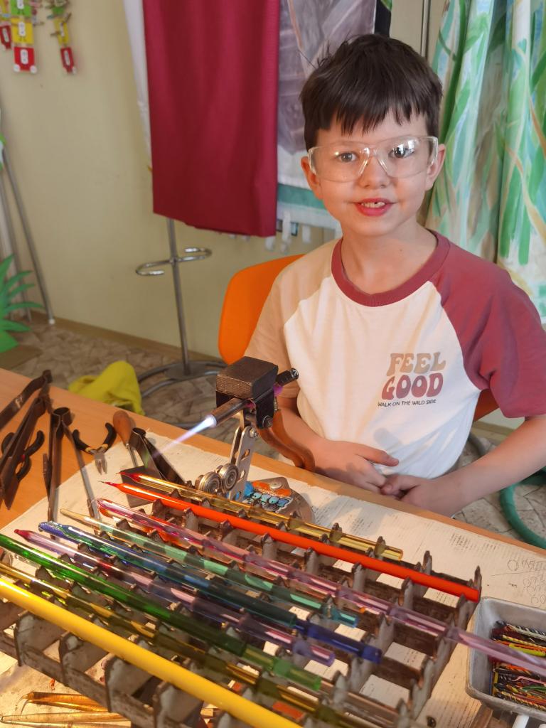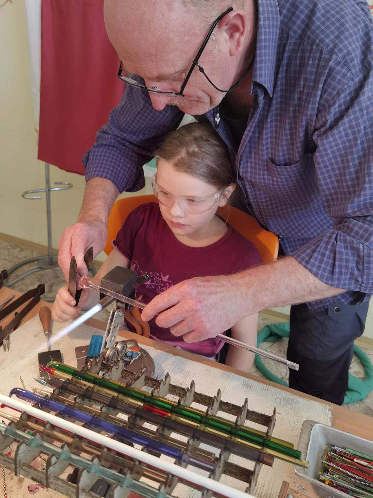 Ve školní družině proběhla zajímavá akce,kde si děti samy vyzkoušely práci se sklem. Pod vedením zkušeného pana Košlera si vybraly barvu a tvar svého přívěsku - výsledkem byla pestrobarevná srdce, lístky, vafle či korálek. Zajímavostí byly mj. i speciální kleště na tvarování,známé jako kaprcvokajz.