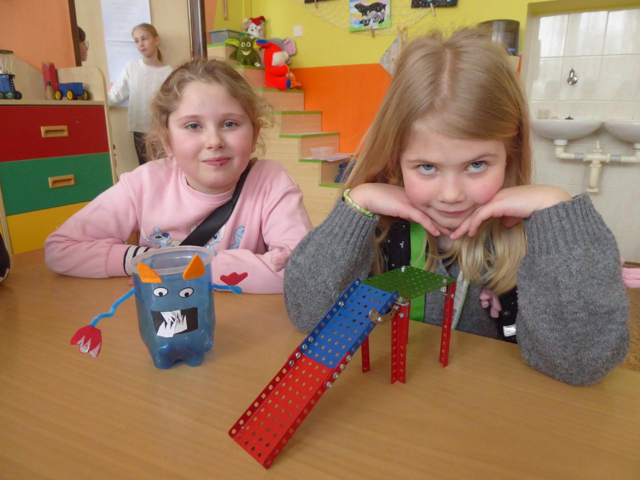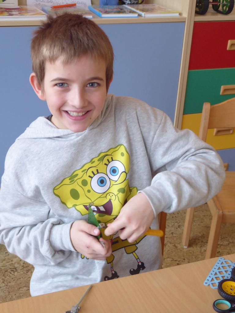 Do vyrábění ze stavebnice Merkur, z dřevěné Kaply i recyklovaného materiálu a odpadu se vrhly s nadšením a obrovským nasazením. Někdo si troufl pracovat sám a někdo si rozdělil práci ve skupince s kamarády. A jestli myslíte, že tahle činnost je především výsadou kluků, tak to byste se ale pěkně přepočítali. Děvčata ze druhého oddělení vzala výrobu doslova útokem a mnohdy měla hotovo dříve, než se kluci vůbec domluvili, co budou stavět. Ze hřiště, které postavili druháci z Merkuru, by měly malé ploštice přinejmenším stejnou radost, jako z toho Ferdova. Po zjištění, co vše je možné vyrobit z odpadu, bylo opravdu těžké si vybrat, do čeho se pustit. Ani prvňáčci se nenechali zahanbit a ukázali, že ledaco sešroubovat a ohánět se kladívkem, umí také. A stavebnice Kapla - to je nepřeberné množství nápadů a možností, jak už jste v naší fotogalerii mohli vidět mnohokrát.