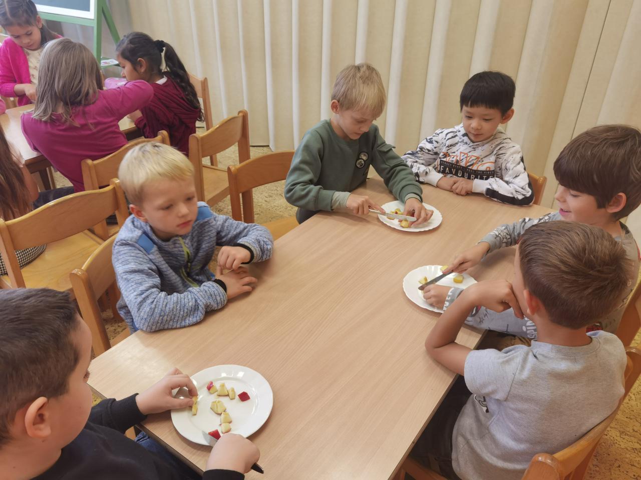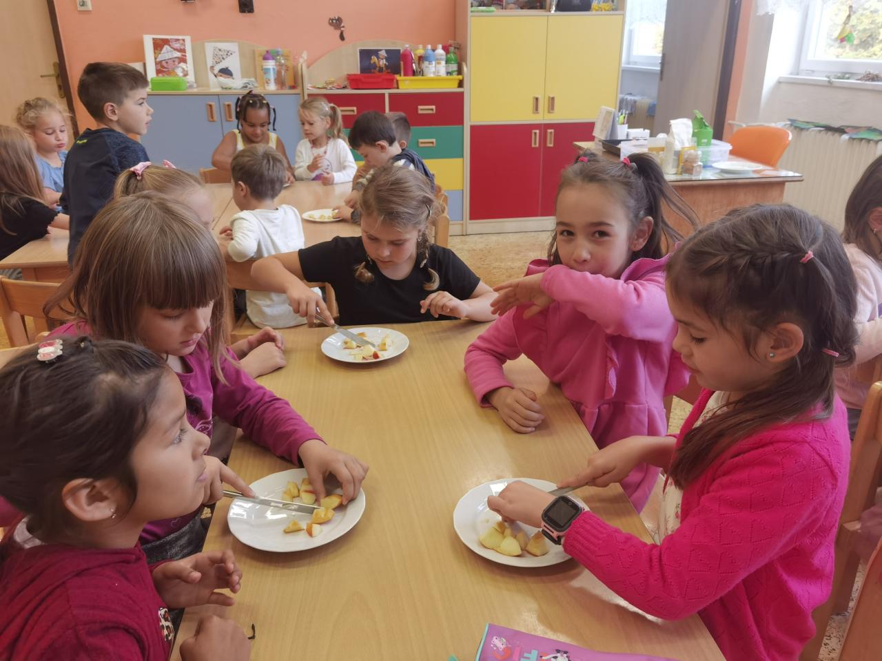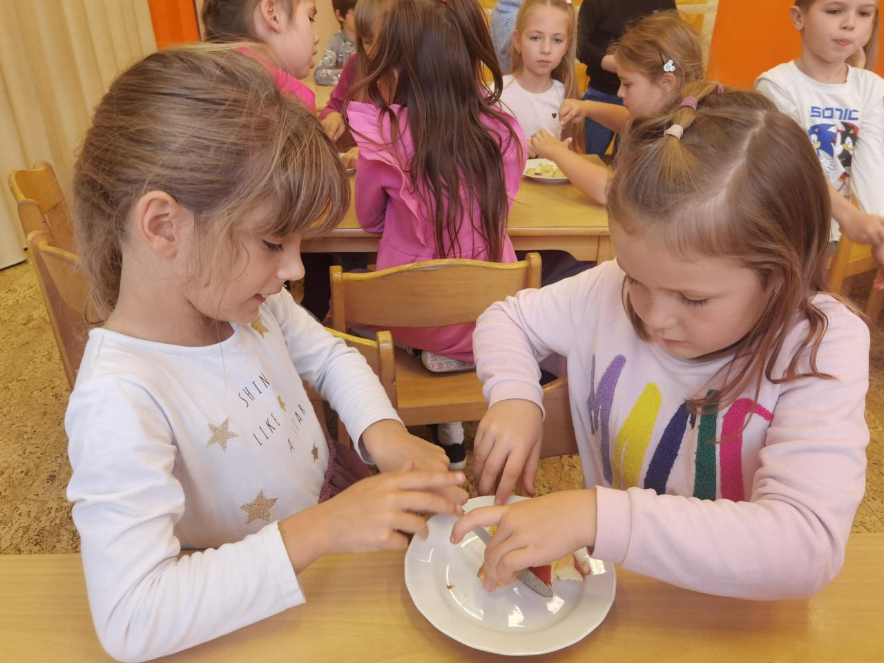 V naší družině to krásně vonělo po podzimu. Děti se s chutí pustily do přípravy jablečného závinu, který si společně upekly. Největší odměnou po práci byla samozřejmě ochutnávka dezertu skoro stejně sladkého jako med od včelích medvídků Čmeldy a Brumdy v šípkovém čaji Křemílka a Vochomůrky.