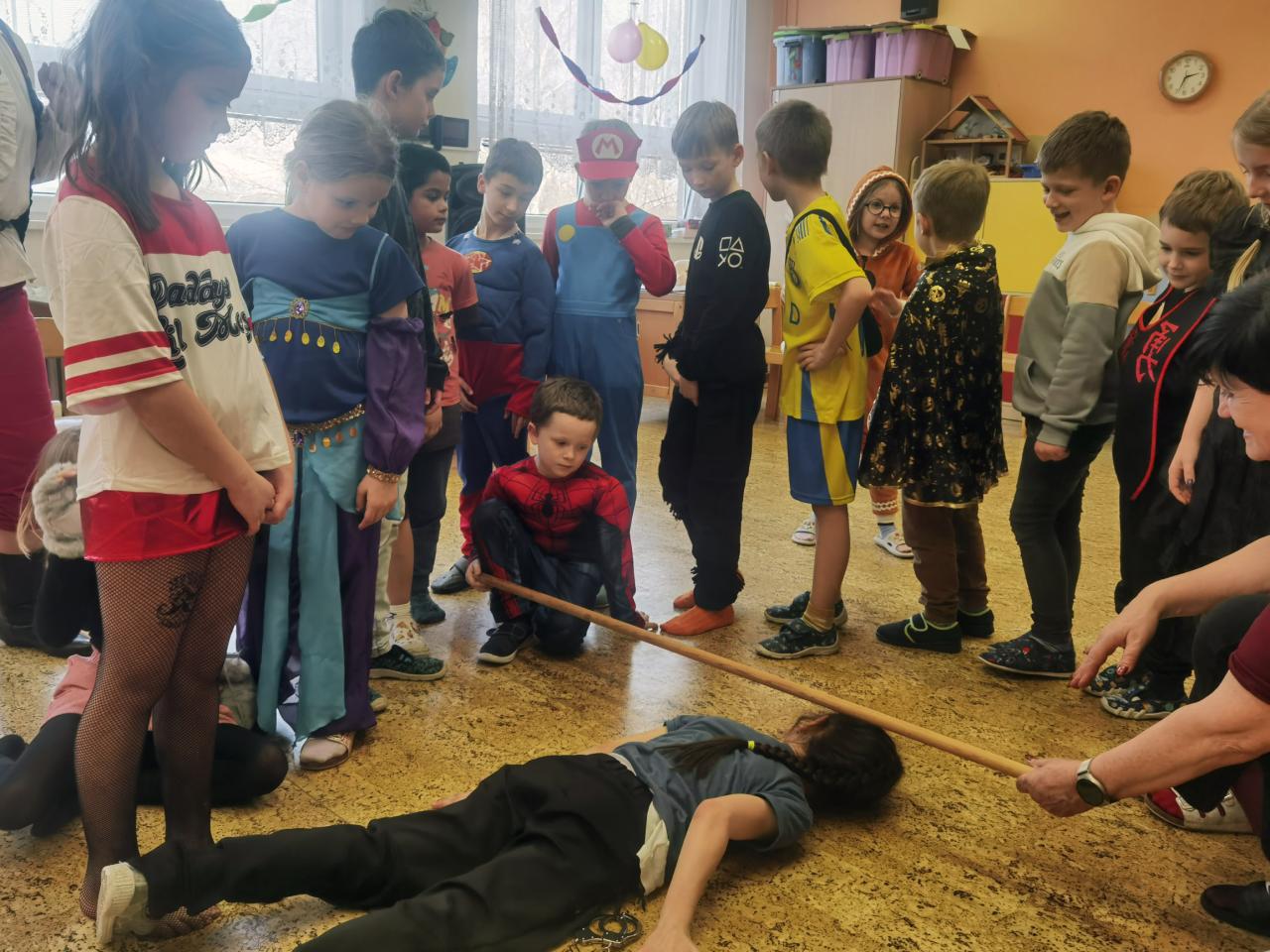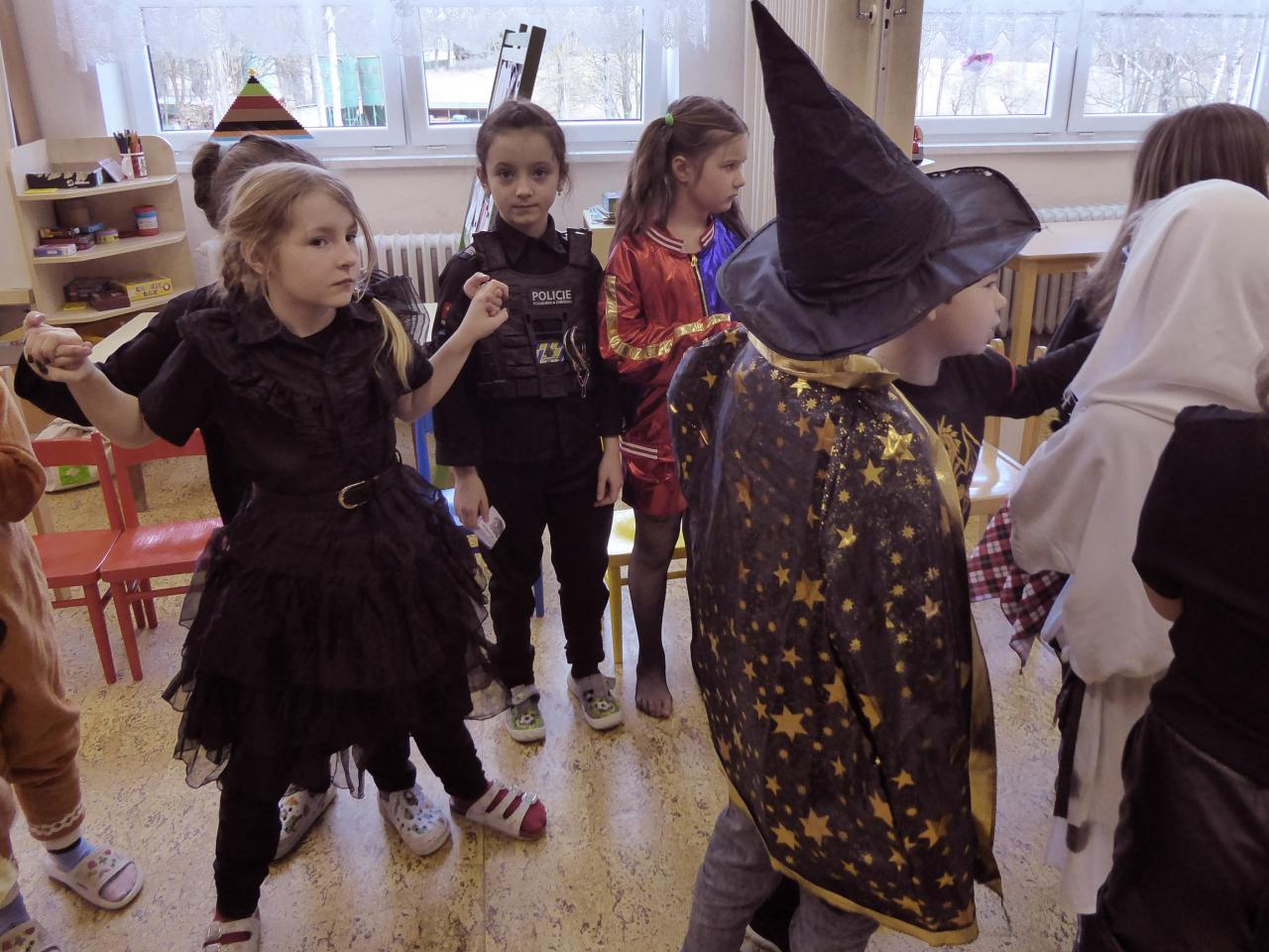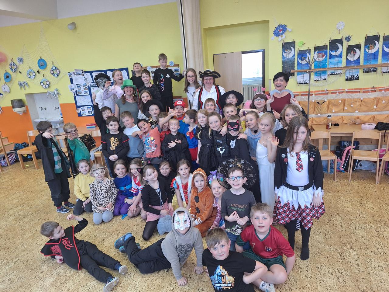 Školní družina uspořádala karneval plný tance a zábavy. Děti se předvedly ve veselých i strašidelných maskách a účastnily se různých soutěží, jako je pojídání marshmallow, kreslení pohádek nebo hádání zpěváků. Nechyběla ani oblíbená židličková hra. Celé odpoledne zde vládla veselá atmosféra.
