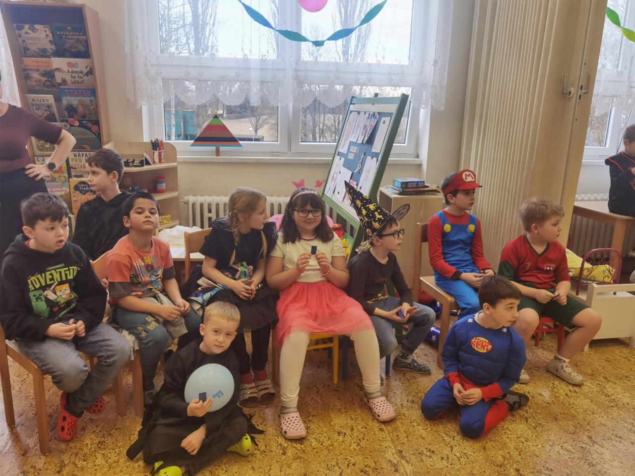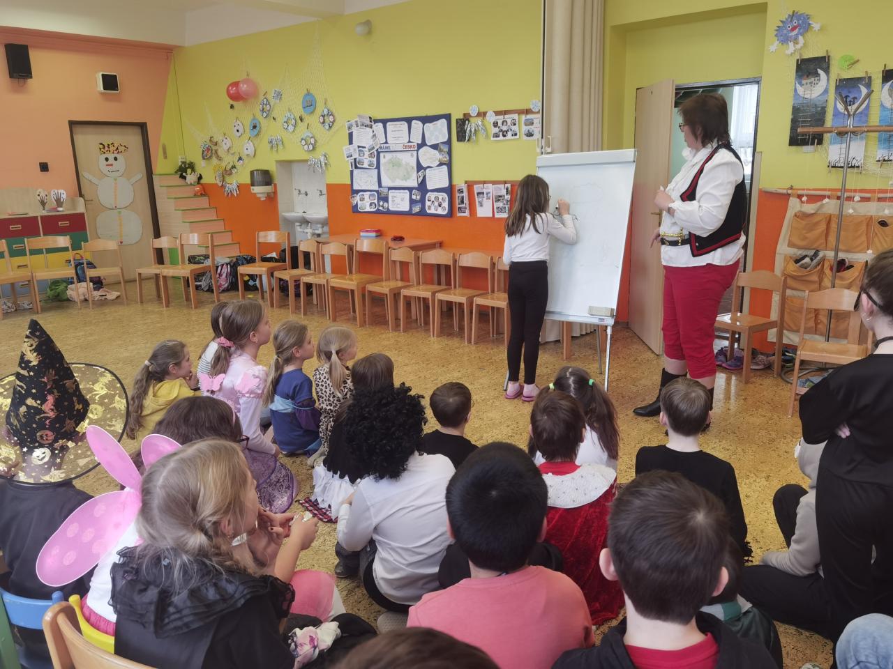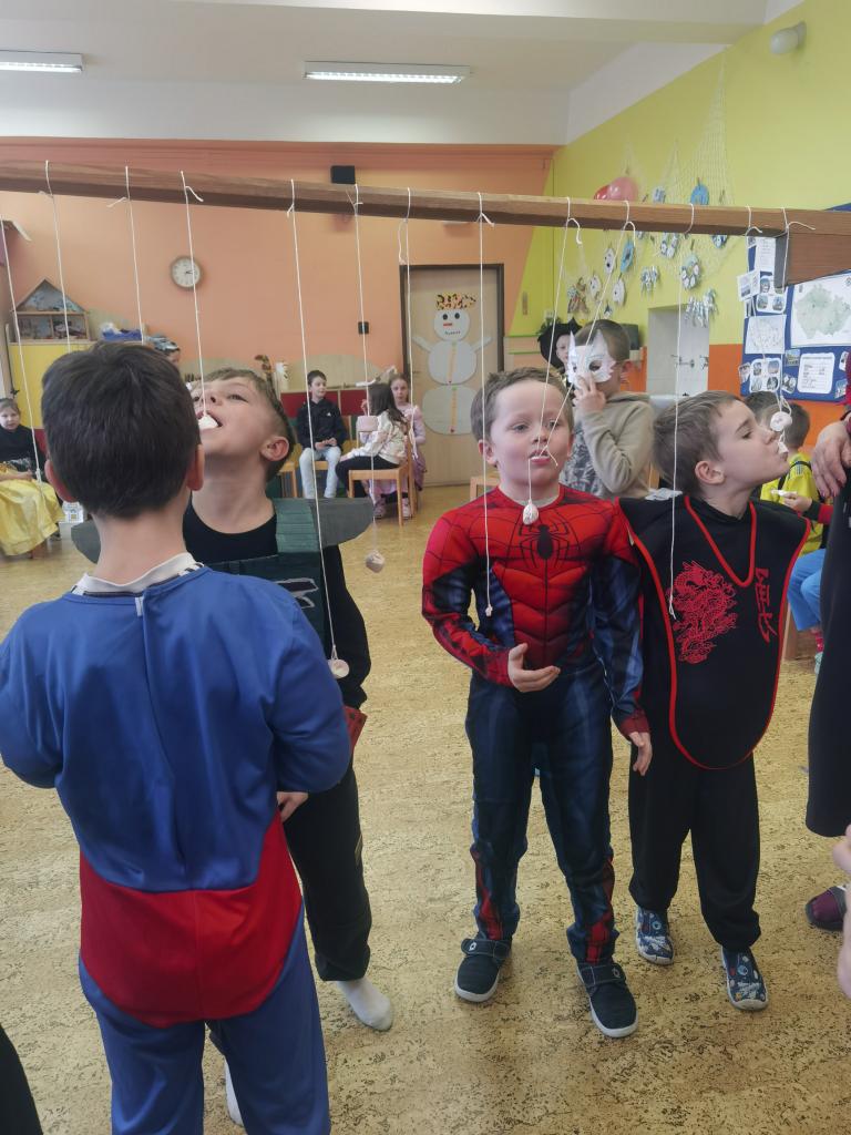 Školní družina uspořádala karneval plný tance a zábavy. Děti se předvedly ve veselých i strašidelných maskách a účastnily se různých soutěží, jako je pojídání marshmallow, kreslení pohádek nebo hádání zpěváků. Nechyběla ani oblíbená židličková hra. Celé odpoledne zde vládla veselá atmosféra.