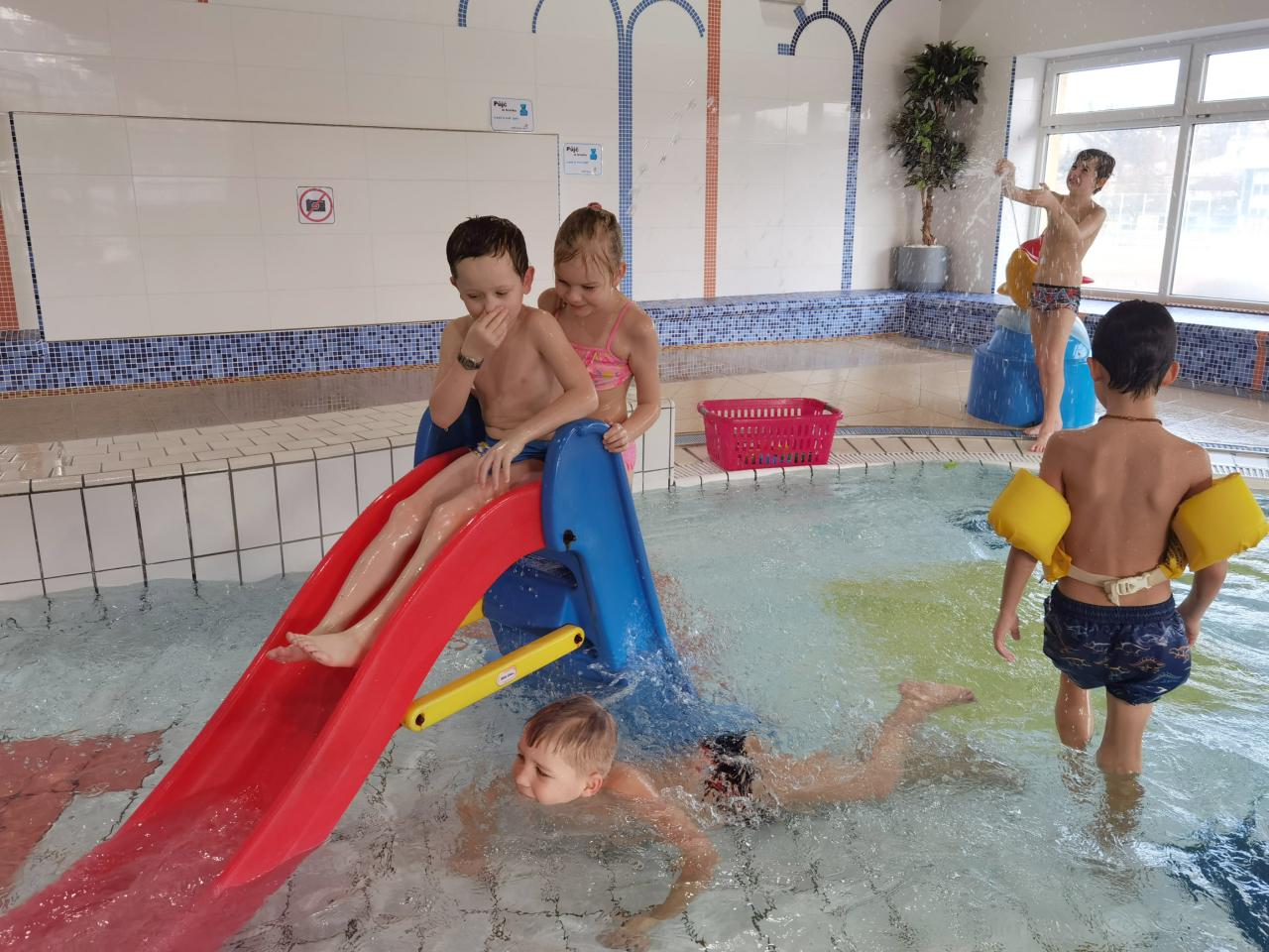 Do pelhřimovského bazénu jsme se s dětmi z družiny vypravili rovnou dvakrát. V relaxační zóně si malí plavčíci užívali vířivky, vodních trysek, potápění i malého brouzdaliště s klouzačkou. Dokonce si mohli zaplavat i ve vodní jeskyni. A to nejlepší je, že ze dvou neplavců se zde stali plavci!