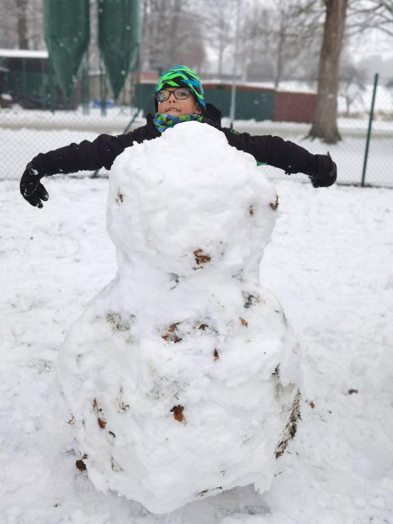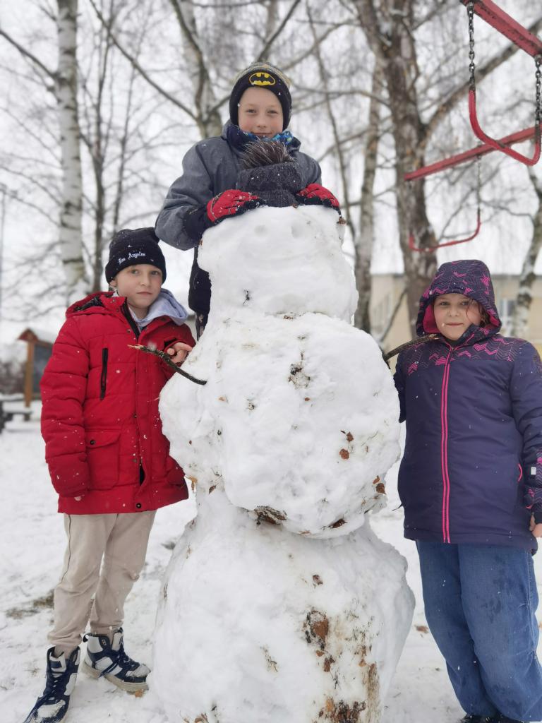 Jakmile zima přinesla na naše školní hřiště nadílku sněhu, věnovala s ním dětem i radost a zábavu. Nechyběl smích ani červené tváře od mrazu. Děti stavěly sněhuláky, koulovaly se a zkoušely vytvářet nejrůznější sněhové stavby.