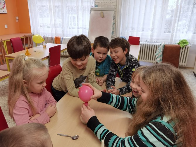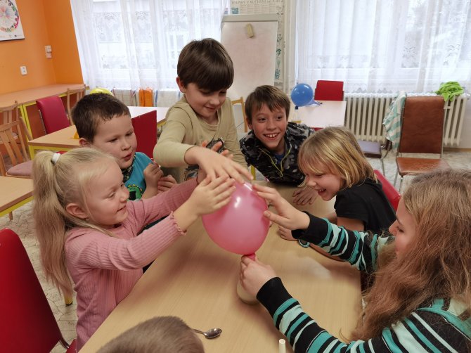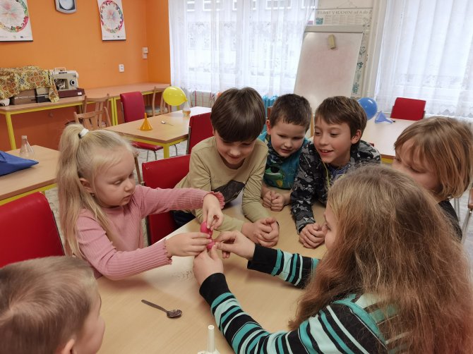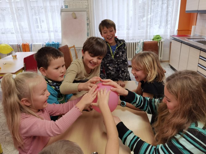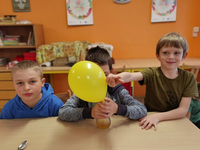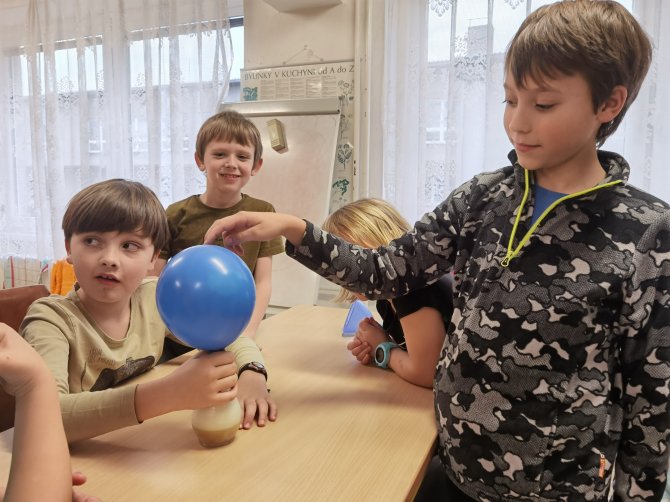 Nechyběl ani badatelský pokus, při kterém jsme pomocí jedlé sody a octa nechali nafouknout balonek. Potěšili jsme tak jak chuťové, tak zrakové buňky.