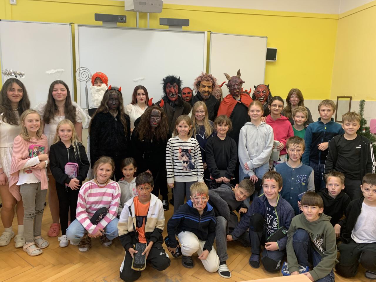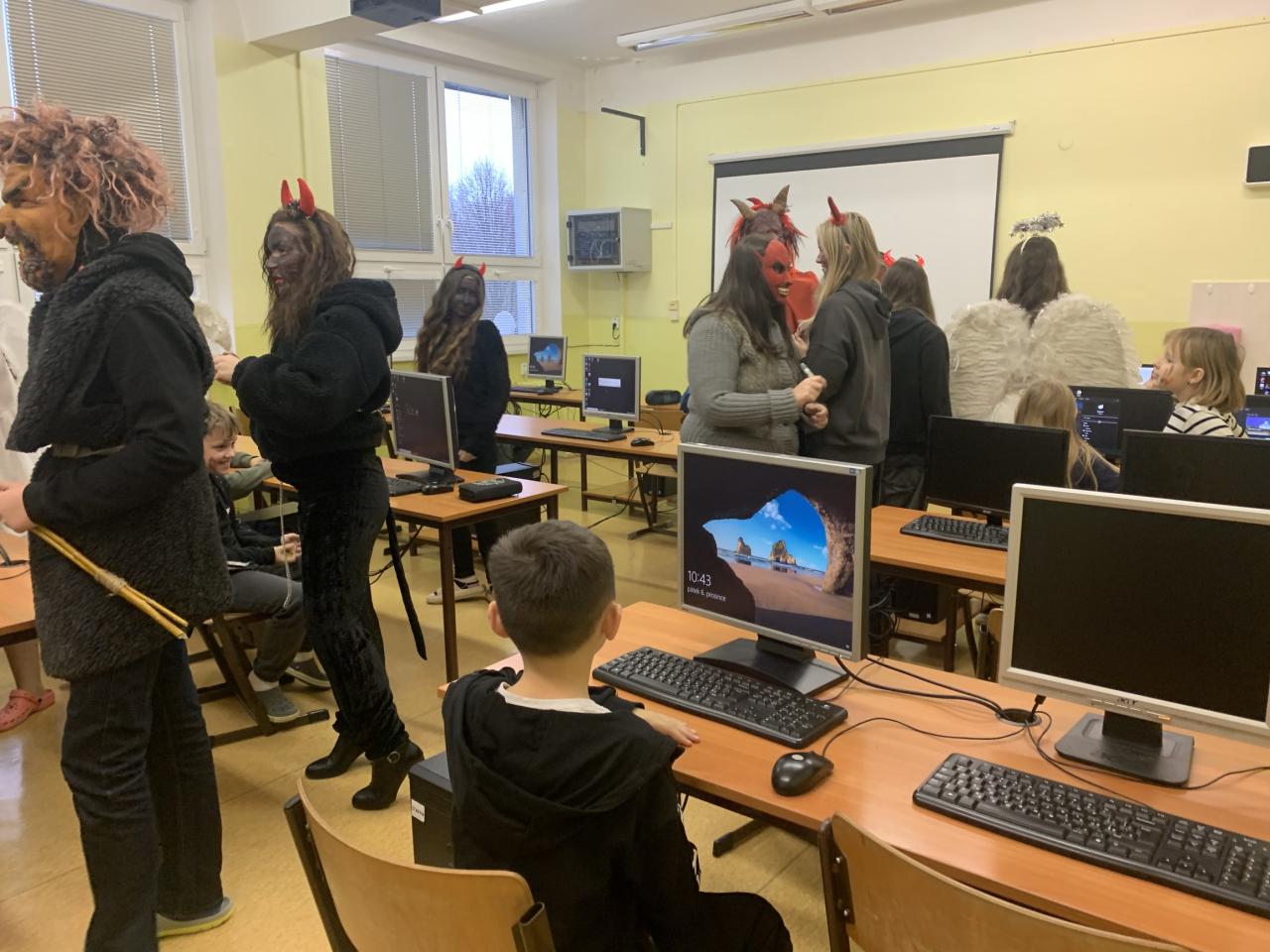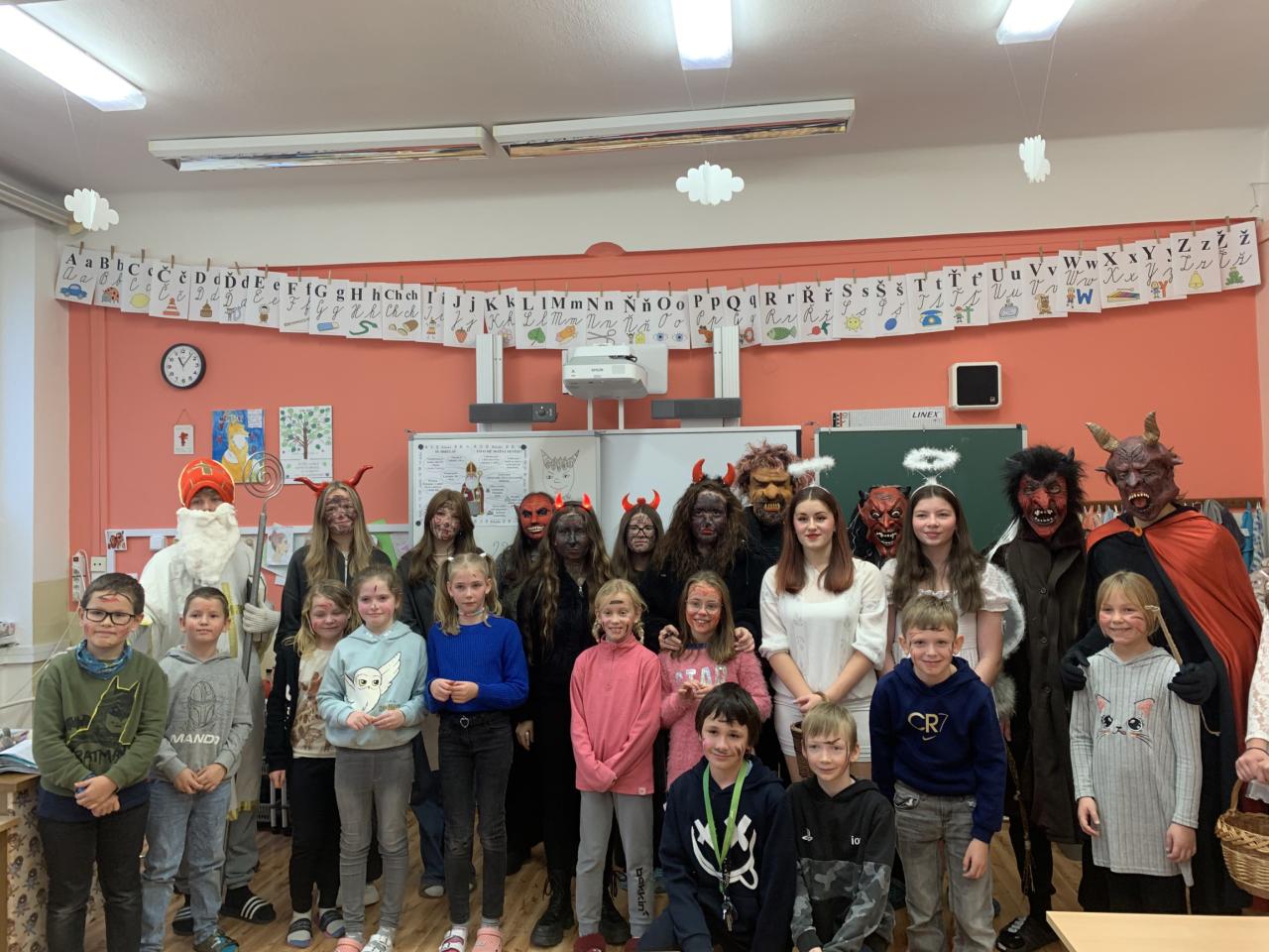 Tentokrát přišel do školy svatý Mikuláš se svými anděli doprovázen čertovskou cháskou v pátek 6. prosince. Děti zazpívaly písničky, odrecitovaly básničky a za jejich snahu dostaly malou sladkost. Na Mikuláše se zřejmě těšily, protože mu namalovaly spoustu krásných obrázků. Na naší škole žádné zlobivé děti nejsou, neboť všichni po skončení vyučování odcházeli domů. Nikoho čerti do pekla neodnesli.