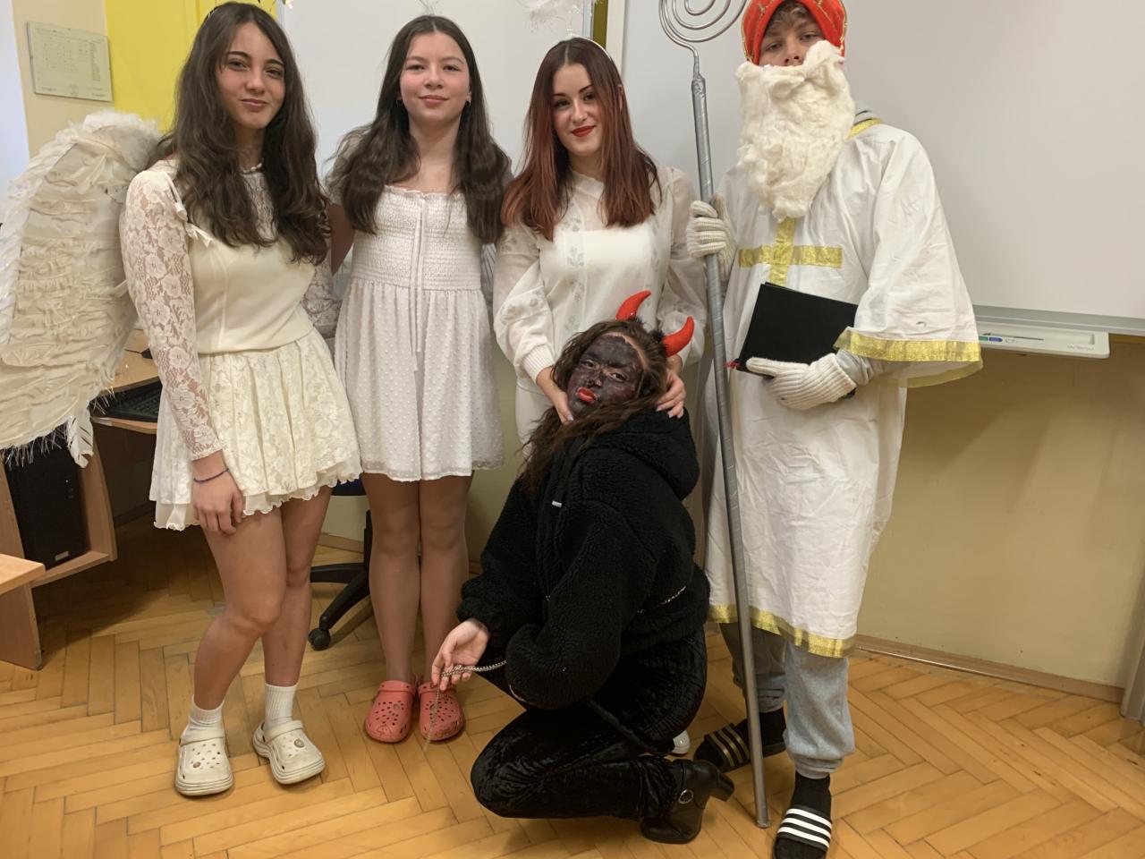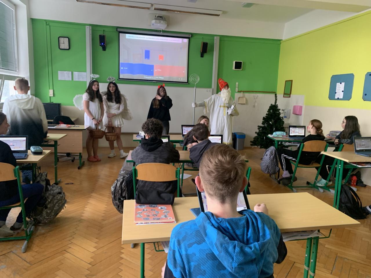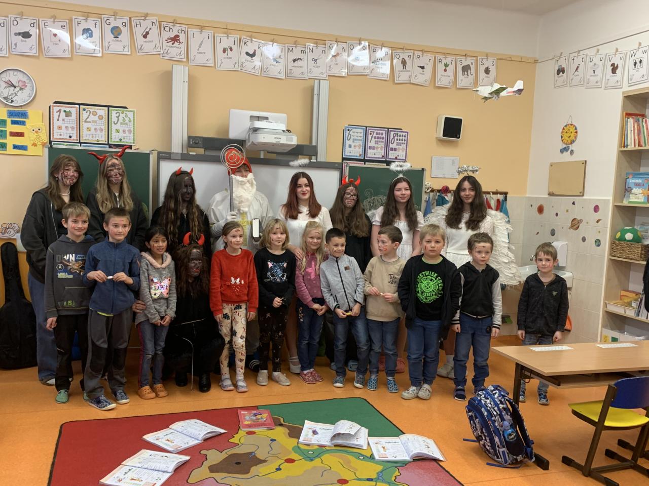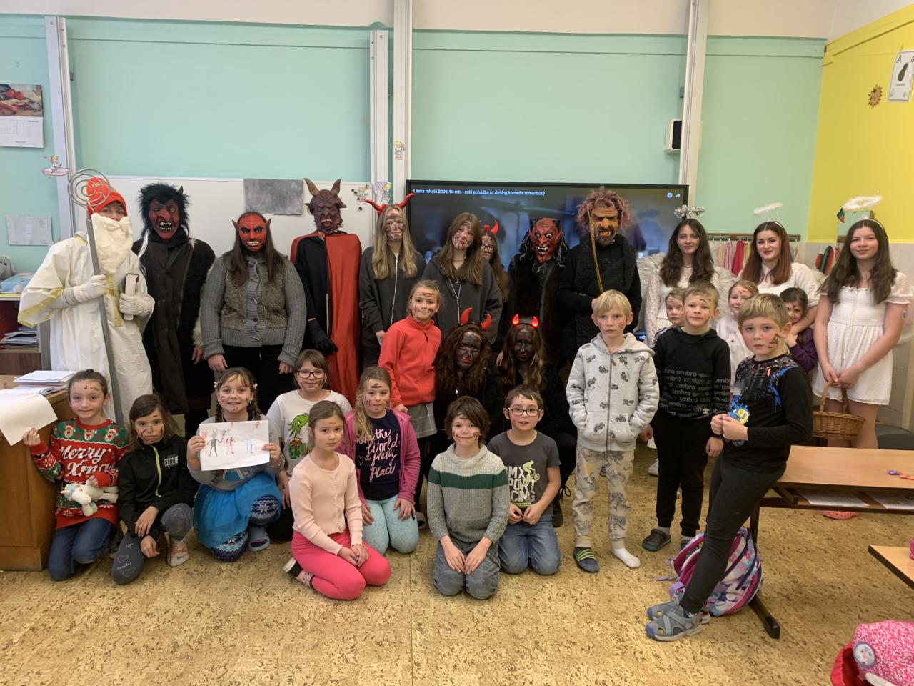 Tentokrát přišel do školy svatý Mikuláš se svými anděli doprovázen čertovskou cháskou v pátek 6. prosince. Děti zazpívaly písničky, odrecitovaly básničky a za jejich snahu dostaly malou sladkost. Na Mikuláše se zřejmě těšily, protože mu namalovaly spoustu krásných obrázků. Na naší škole žádné zlobivé děti nejsou, neboť všichni po skončení vyučování odcházeli domů. Nikoho čerti do pekla neodnesli.