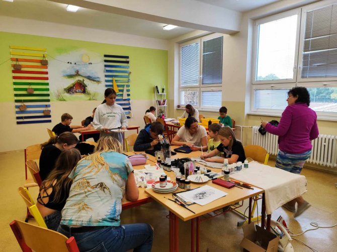 Školní klub - komunitní setkání ve školním klubu - malování triček