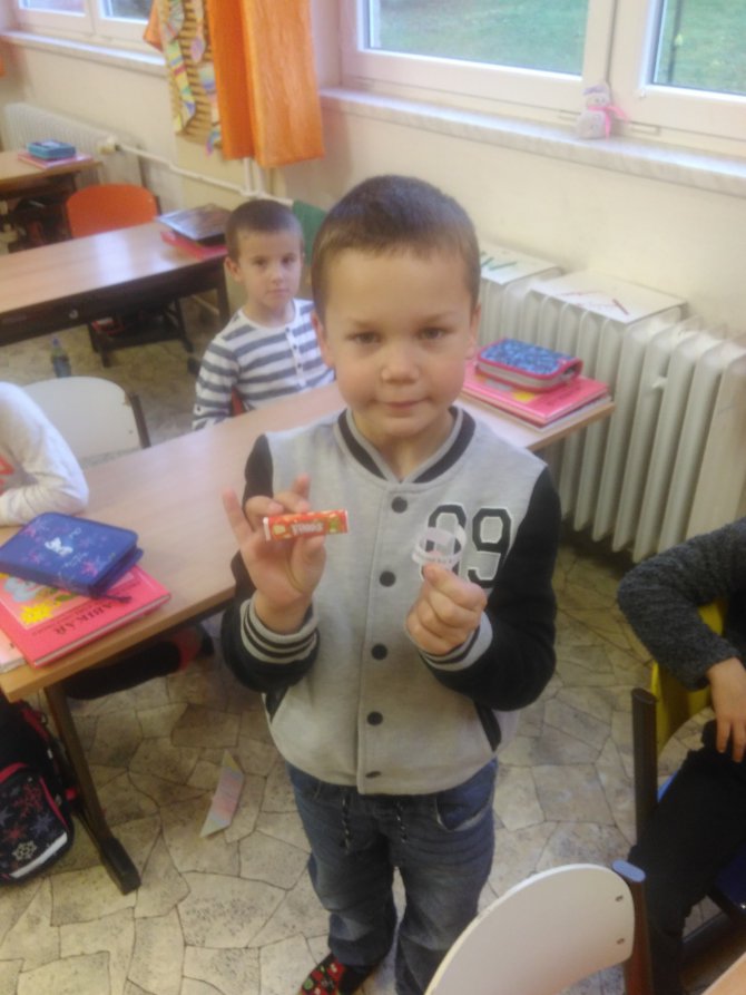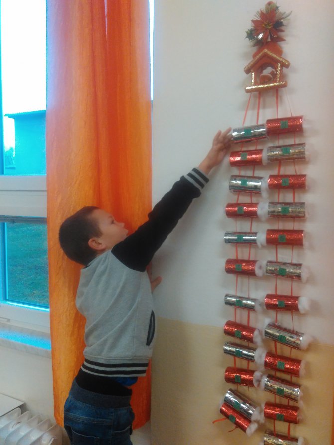 Každý si rozbalí adventní překvapení.Vyráběli jsme také ozdobičky na vánoční stromeček naší školy.