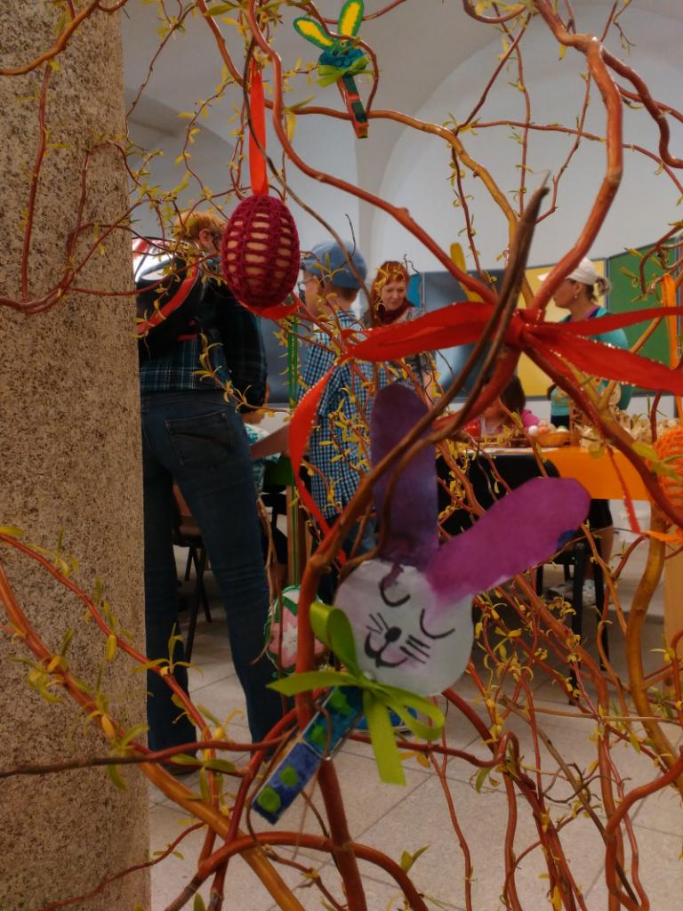 Při návštěvě velikonoční veselice v Jindřichově Hradci mohli návštěvníci obdivovat i výrobky našich šikulů!!! Nalezla jsem je ve skleněné vitrýně mezi krásně malovanými kraslicemi i na březové větvičce.